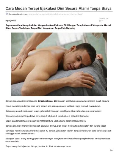 Masturbasi lebih awal merupakan salah satu cara alami mengatasi ejakulasi dini tanpa obat. Bagaimana cara mengatasi ejakulasi dini secara alami, tradisional, dan tanpa obat? Meski terdengar sepele, komunikasi antar pasangan bisa jadi cara mengatasi ejakulasi dini menurut para terapis lho. 120 terapi es mengatasi ejakulasi dini 90. Ejakulasi dini adalah kondisi ketika seorang pria mengeluarkan sperma (mencapai.